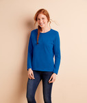 preshrunk 100% cotton jersey • 5.3 oz. • seamless double-needle 1/2" collar • side-seamed with slightly tapered missy fit • double-needle sleeves and hemmed cuffs • Sizes: S-3XL