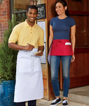 65% cotton twill/35% polyester • 9-oz. • long waiter's waist • 2 front pockets • 5” diameter approx. pocket imprint area • Sizes: 27.75"w x 32.5"L