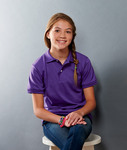 preshrunk 50% cotton/50% polyester jersey • 5.6-oz. • stain-resistant SpotShield® • seamless body with double-needle bottom hem • welt-knit collar and 1x1 ribbed cuffs • two pearlized buttons on reinforced placket • youth ID label • CPSIA tracking label compliant • Sizes: S-XL